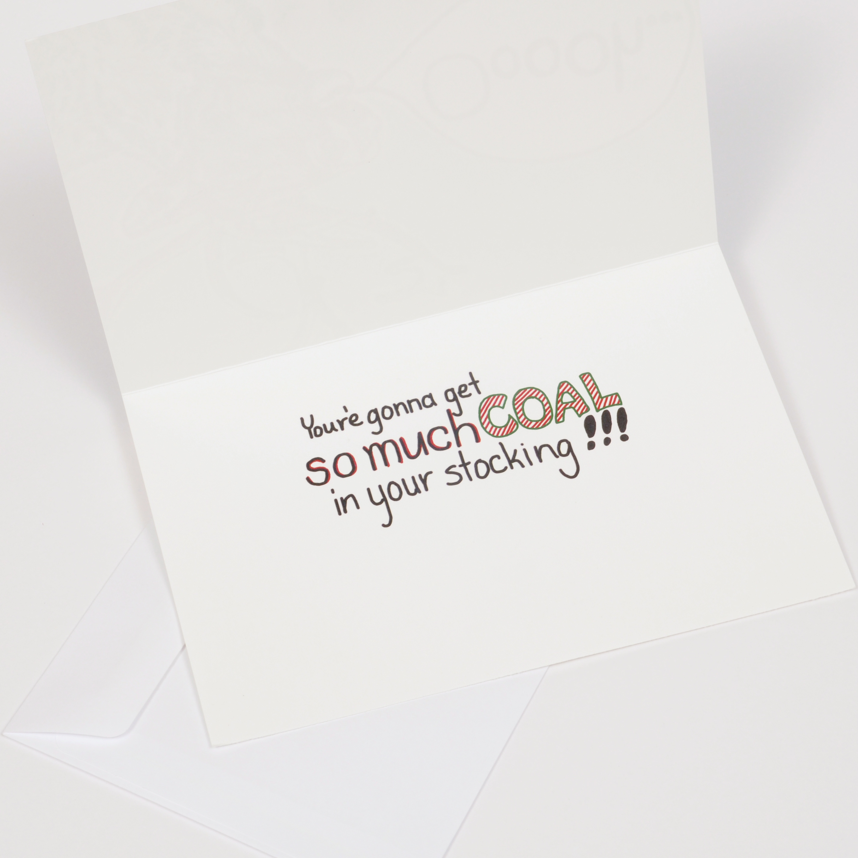 This reindeer knows exactly what Santa's bringing this year, and it isn't for anybody on the Nice list. Give this original card to the person who deserves it most. They know what they did.