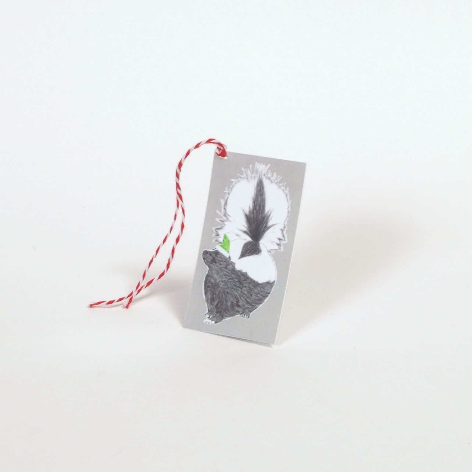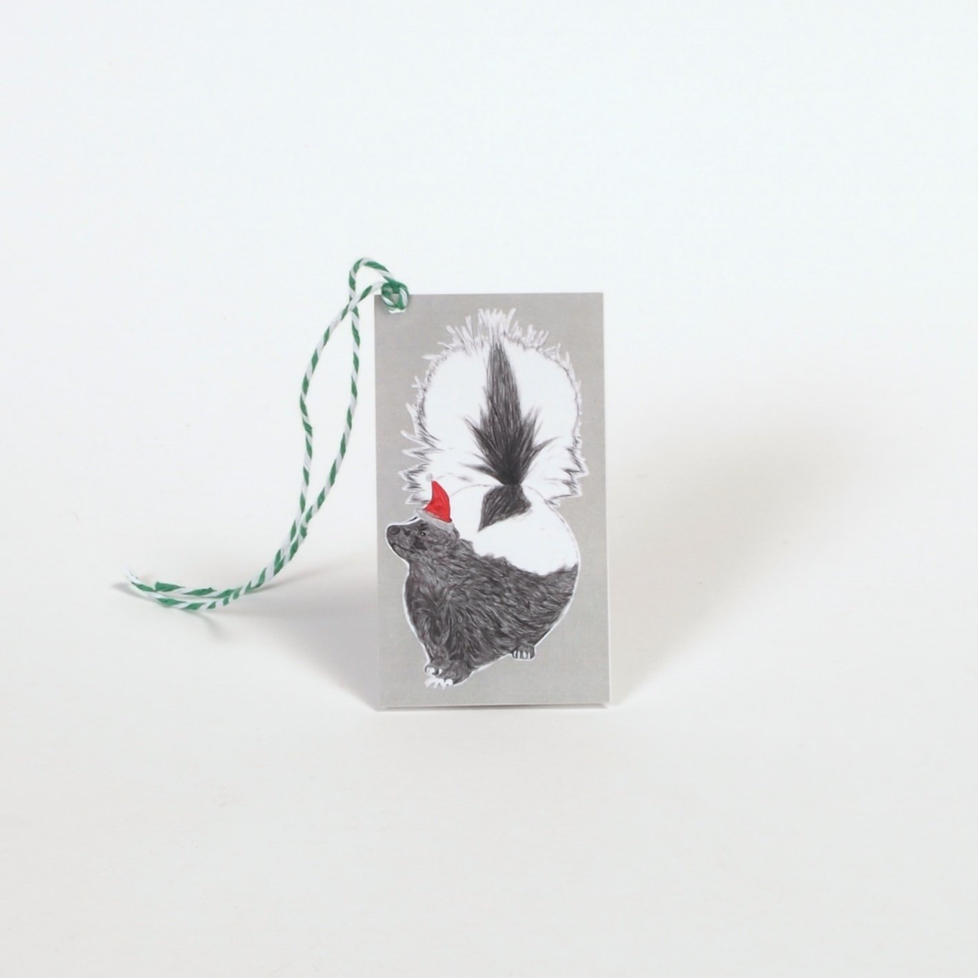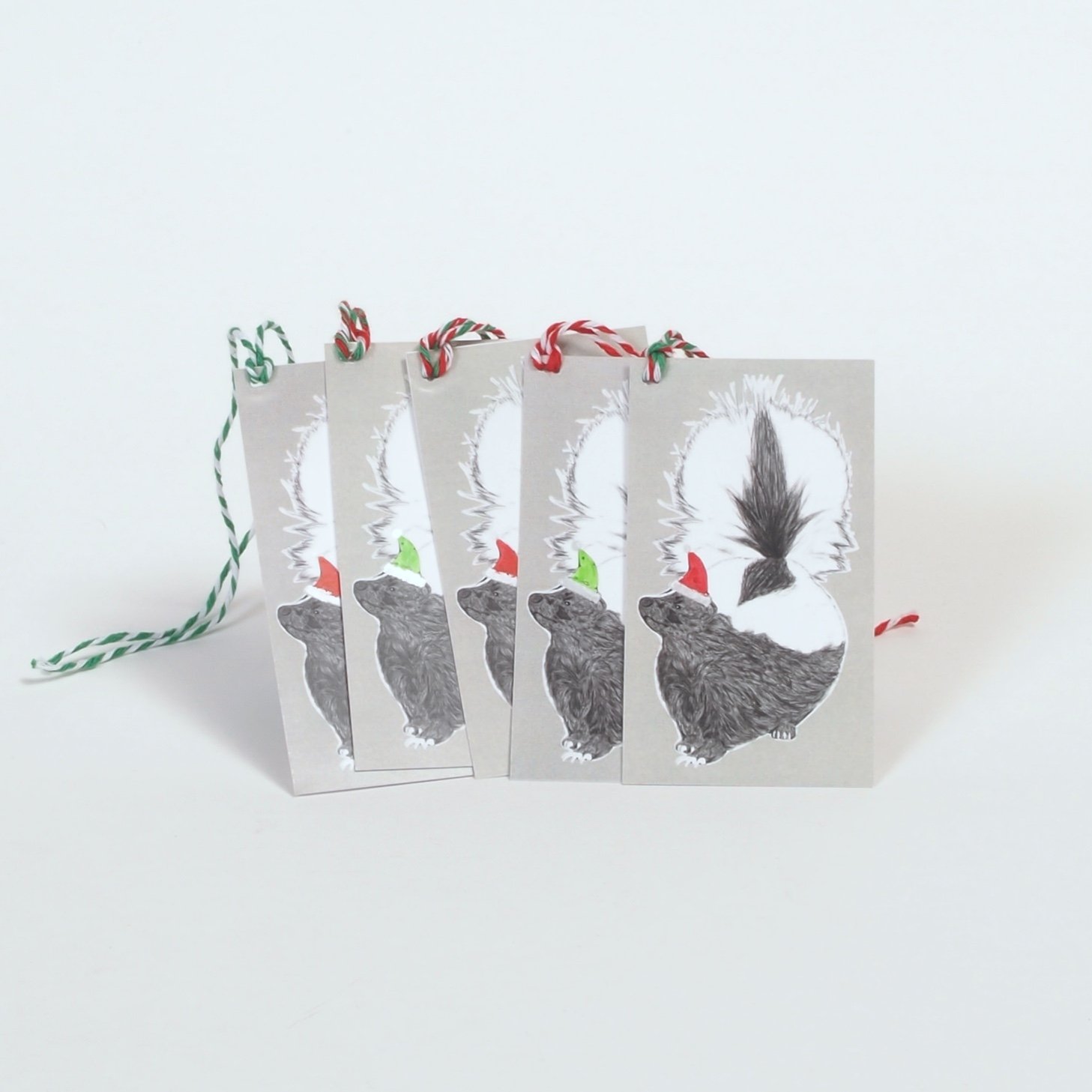 The Grumpy Skunk now has a hand-colored Santa hat and an ungracious message for all your gift receivers this Christmas. Original digital art and Japanese brush pen on heavy card stock are sure to make your presents stand out.