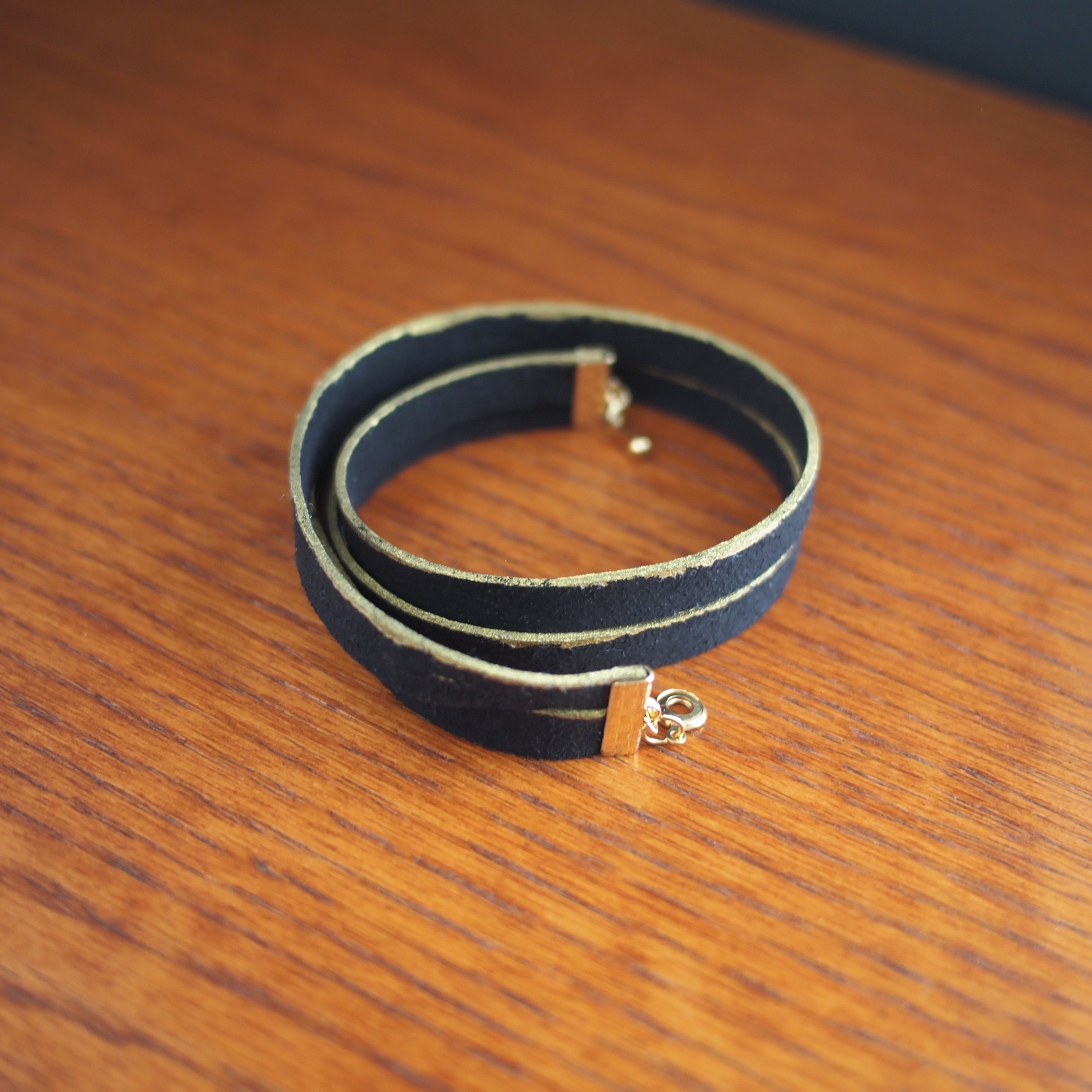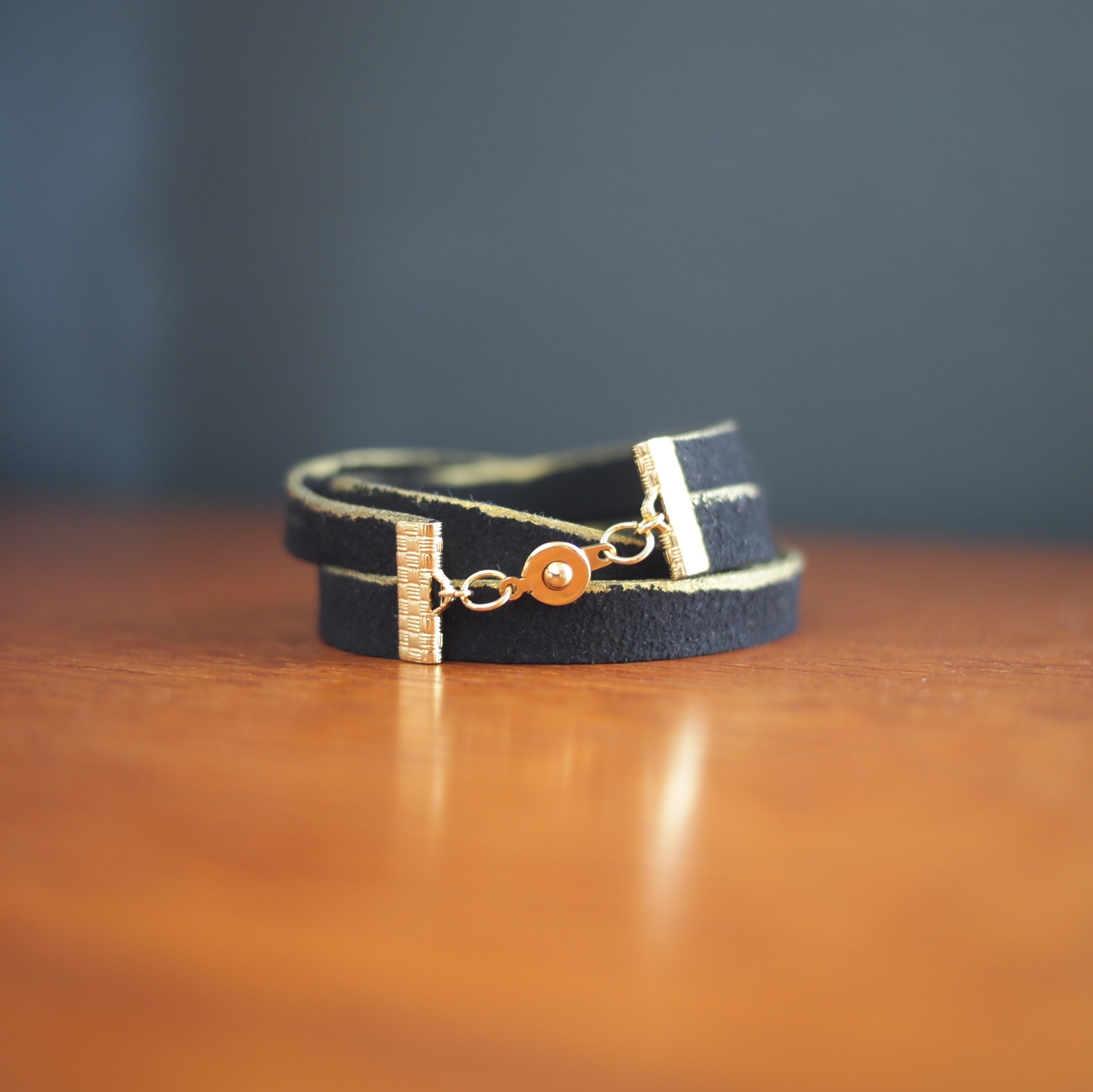 Wrap bracelets just got glam. Lustrous gold ink is painted freehand onto Petunkalunka's signature faux suede and heat set for forever style. The double-lace style has a slightly smaller profile than the triple-lace, but the impact is just as powerful. Is it too much to call this style "edgy?" Because…get it? You get it.